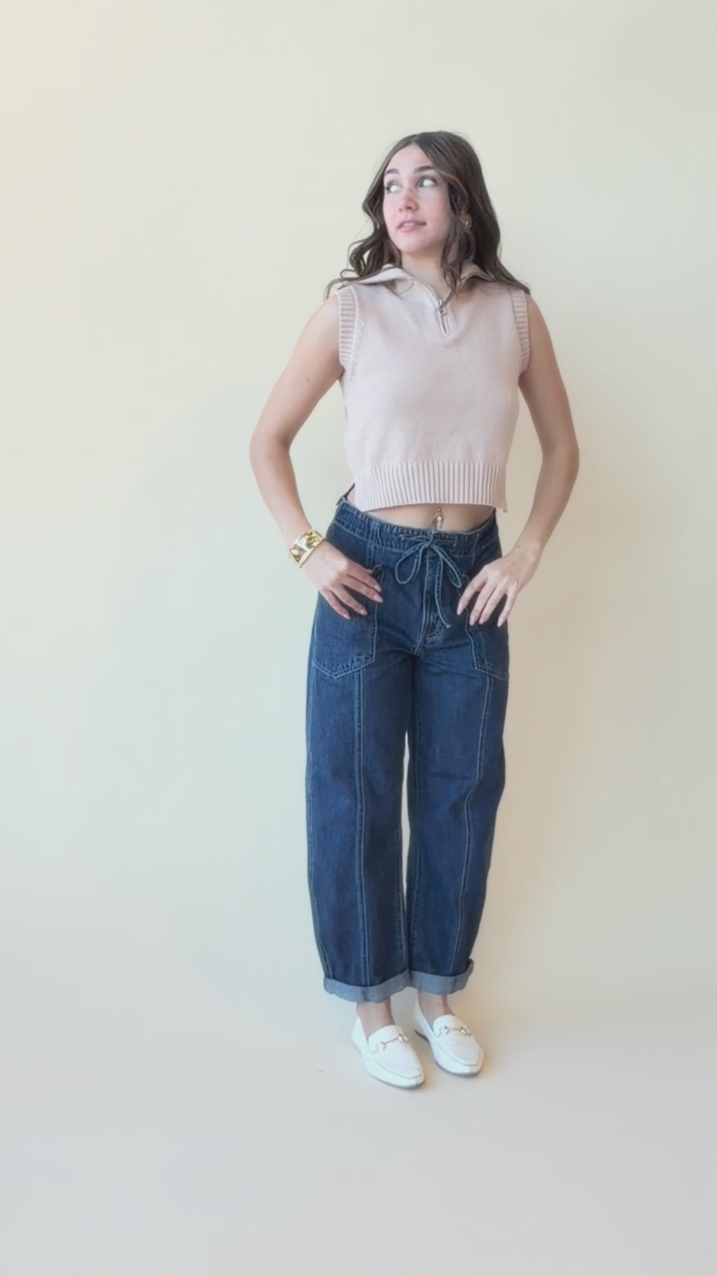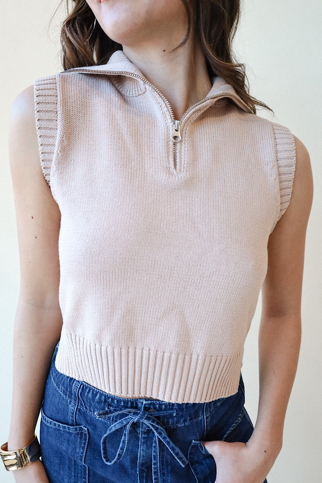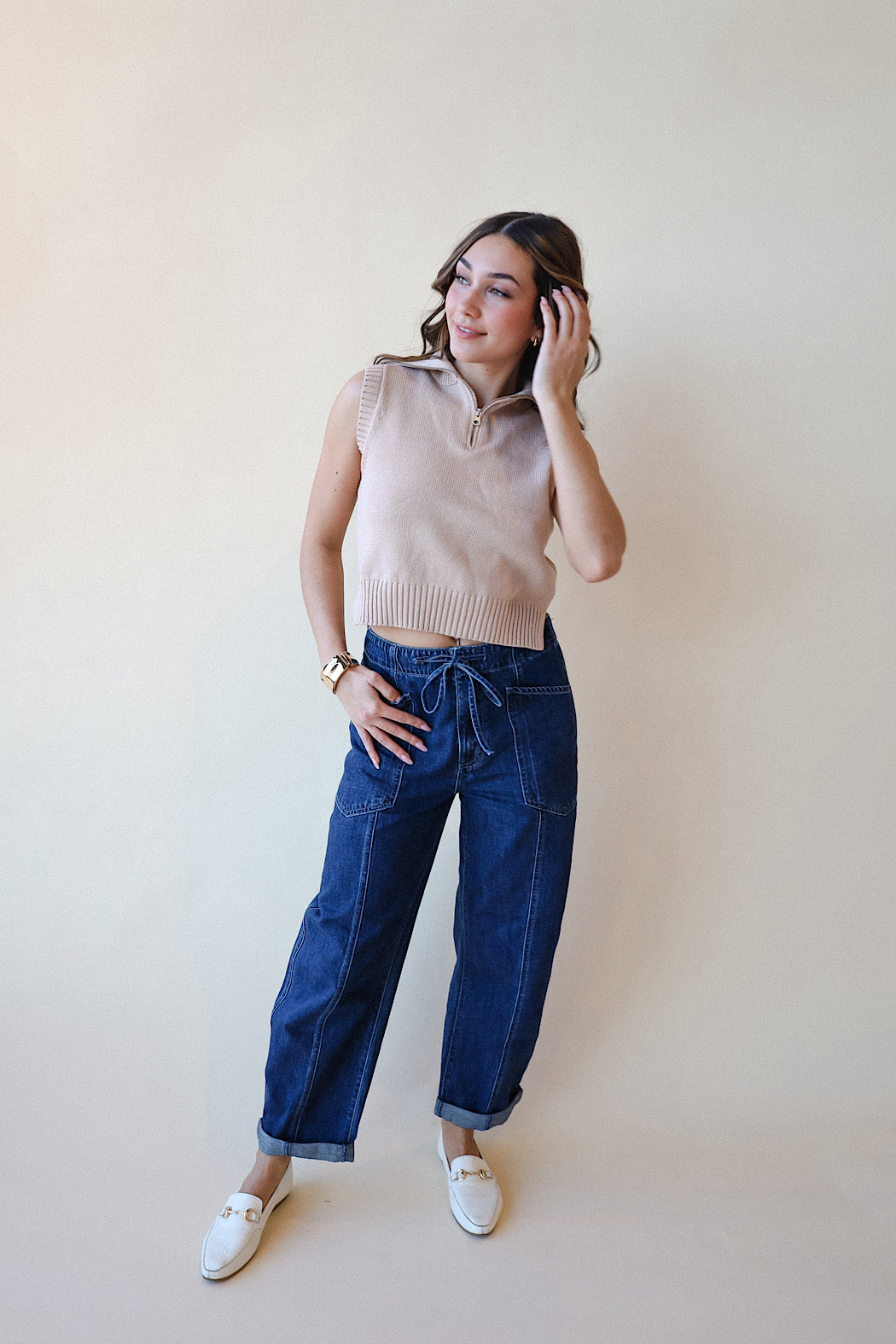 A beautiful and mid heavy weighted knit vest that offers warmth yet breathability and sophisticated style. Pair with our BARREL jeans or with your favorite skirt, shorts, capris this season! Wear to work or play!