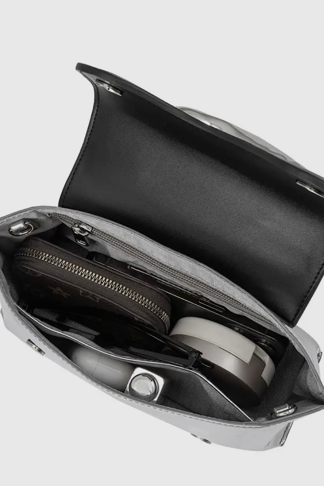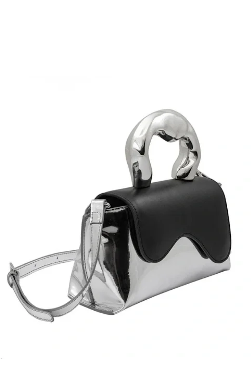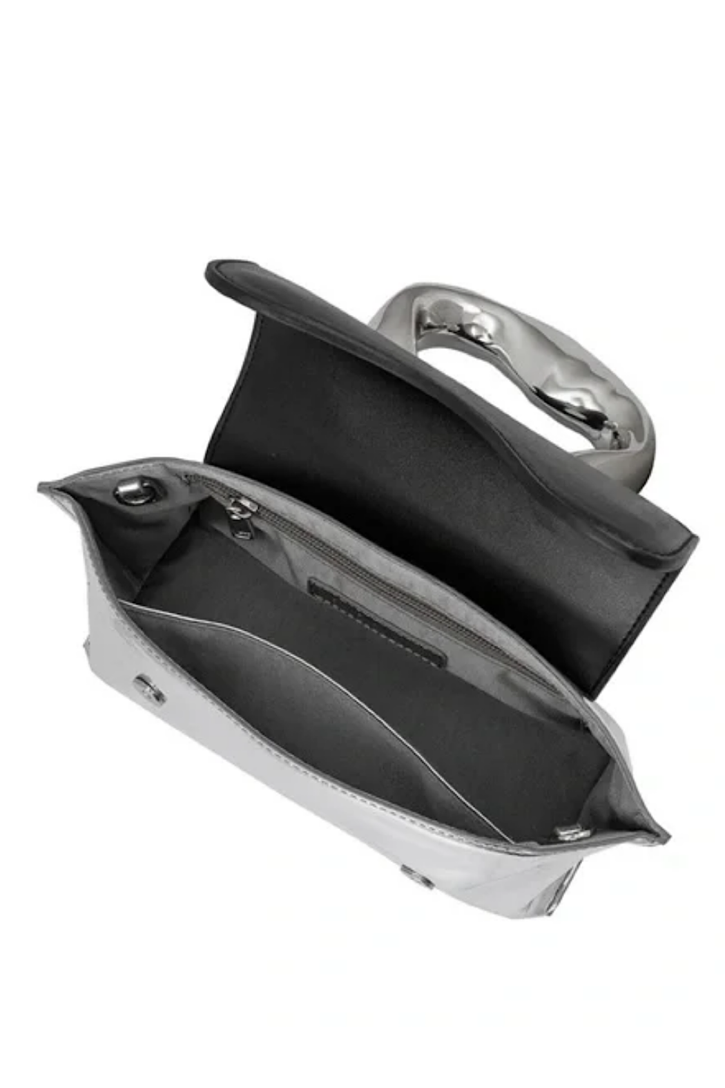 This is one of the most unique and intricate handbags you will find. Made out of recycled vegan leather this metallic top handle bag makes a fashionable yet sustainable statement piece. Wear it comfortably as a crossbody bag using the adjustable strap for hands-free convenience.