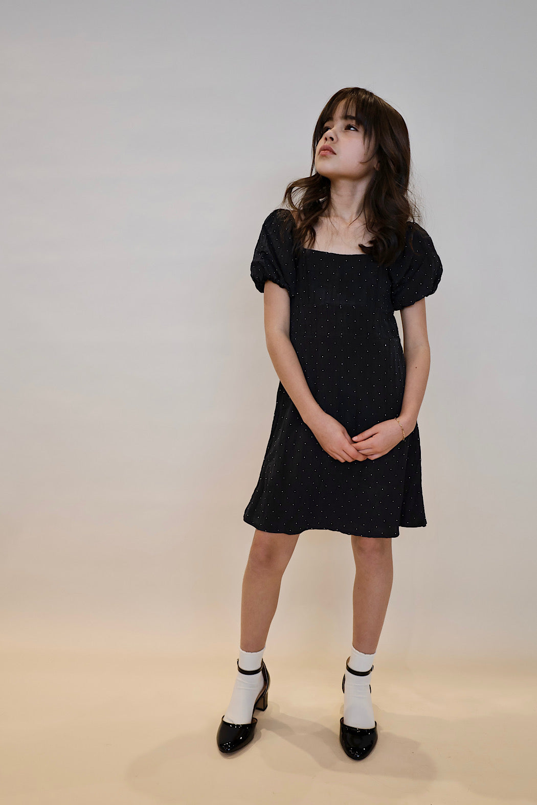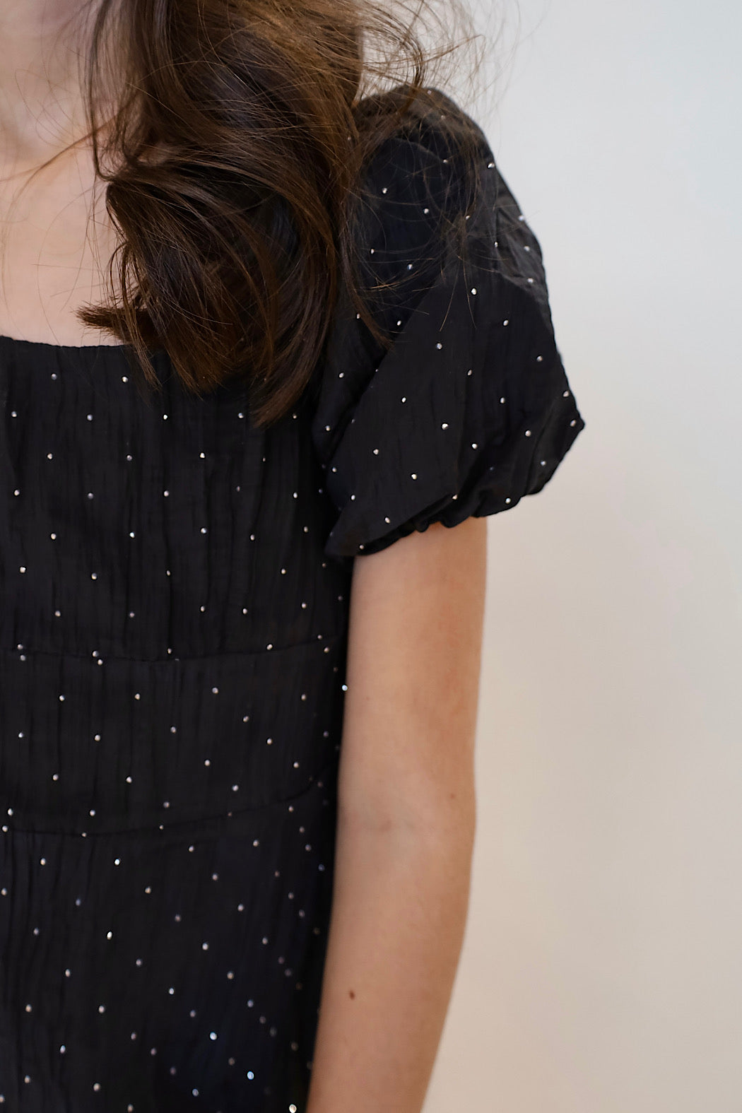 Shine bright at every celebration in this eye-catching Youth Rhinestone Taffeta Dress! Featuring dazzling rhinestone cutout accents and luxurious taffeta fabric, this black dress delivers instant glamour and personality. Perfect for parties, events, or whenever your tween wants to make a memorable impression. A showstopping choice that combines sparkle with sophisticated style.