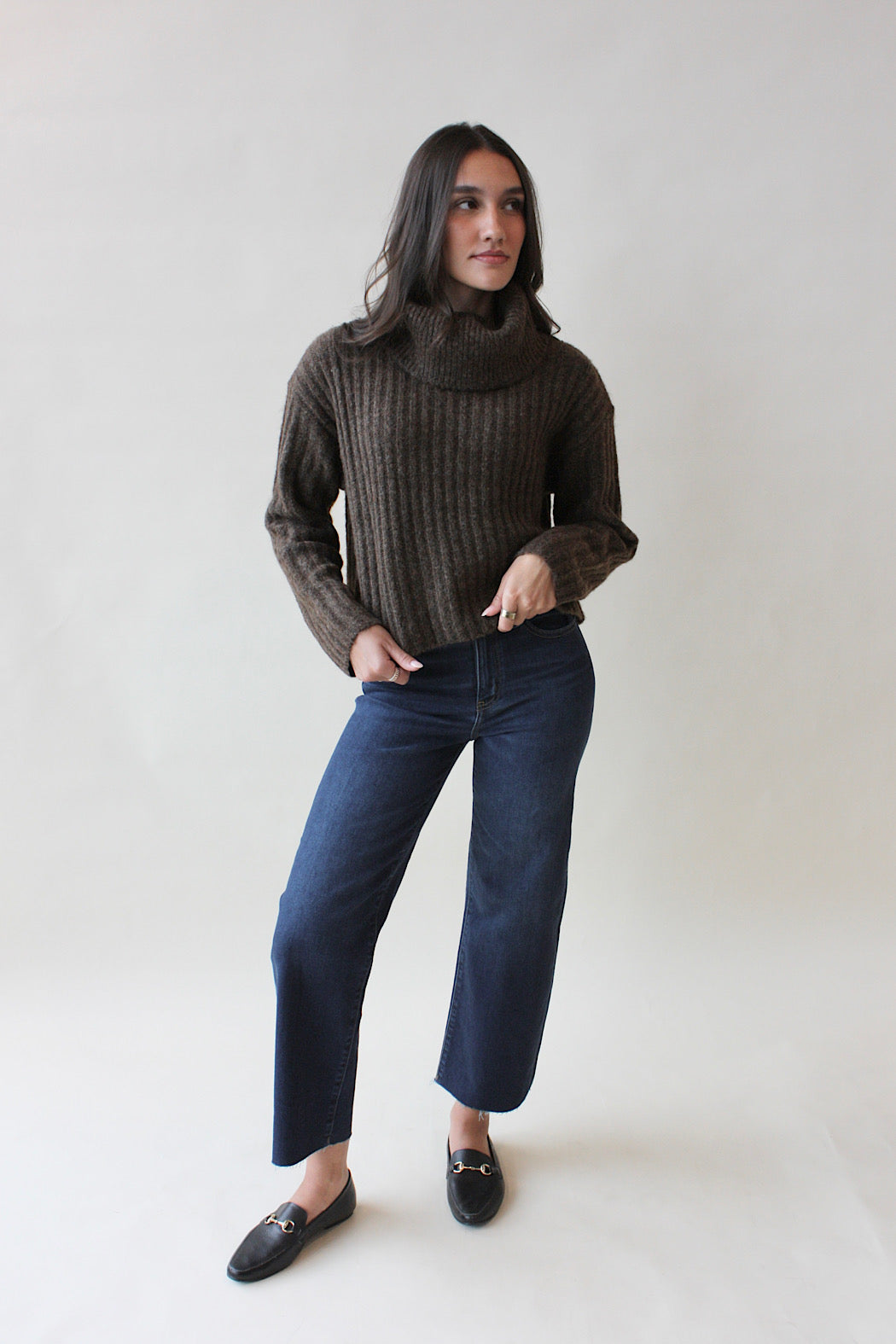This bestselling style is Daze's tried and true high rise wide ankle in a rich indigo. Constructed from our Hug fabric, this jean is flexible enough to hug your body, yet heavy enough to cinch you in.