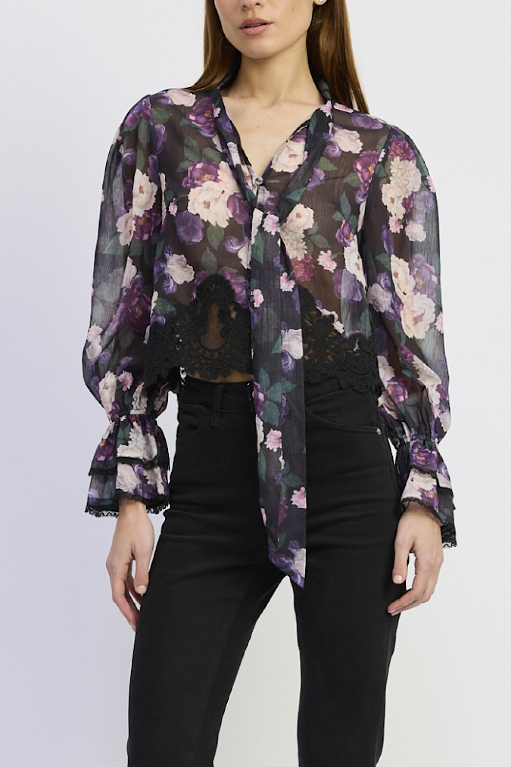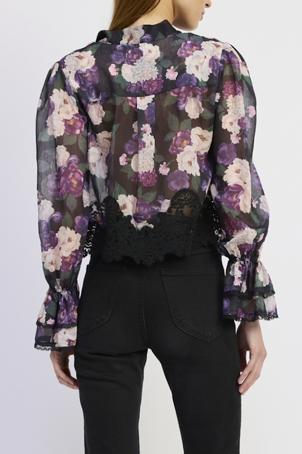This blouse is a beautiful mix of lace and florals. It exudes grace and sensuality, while its flow and intricate details set it apart from any other.