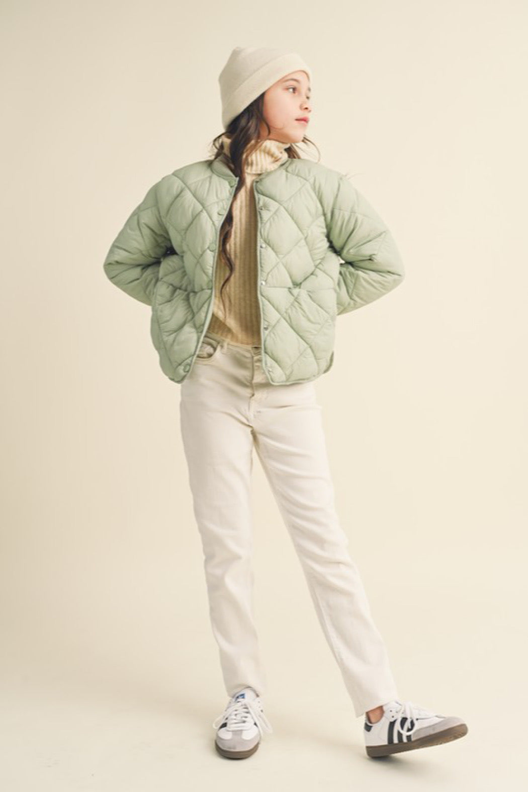 Functional yet stylish, she will love this jacket designed for a layer of warmth without being too heavy, and a flattering puff fit for girls who like to stay active! Pair with our long sleeve basics or a turtleneck during winter months and perfect transitional piece into Spring!