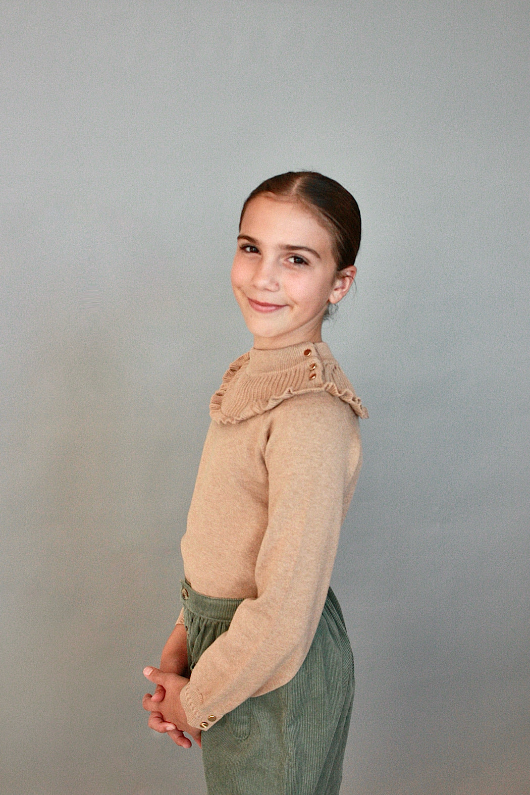 Hope & Henry refined long sleeve mock neck sweater crafted from soft organic cotton elevates your girl's style for the fall and winter season. Features a mock neck with gold button closure, a ruffle detail at the yoke, and a beautiful textured knit to frame her face.