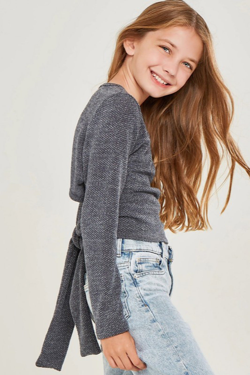 Crafted from substantial knit material, this piece features a distinctive open back with self-tie closure and an intentionally relaxed, dropped fit. A versatile wardrobe essential that delivers both comfort and contemporary style for the mature Youth!