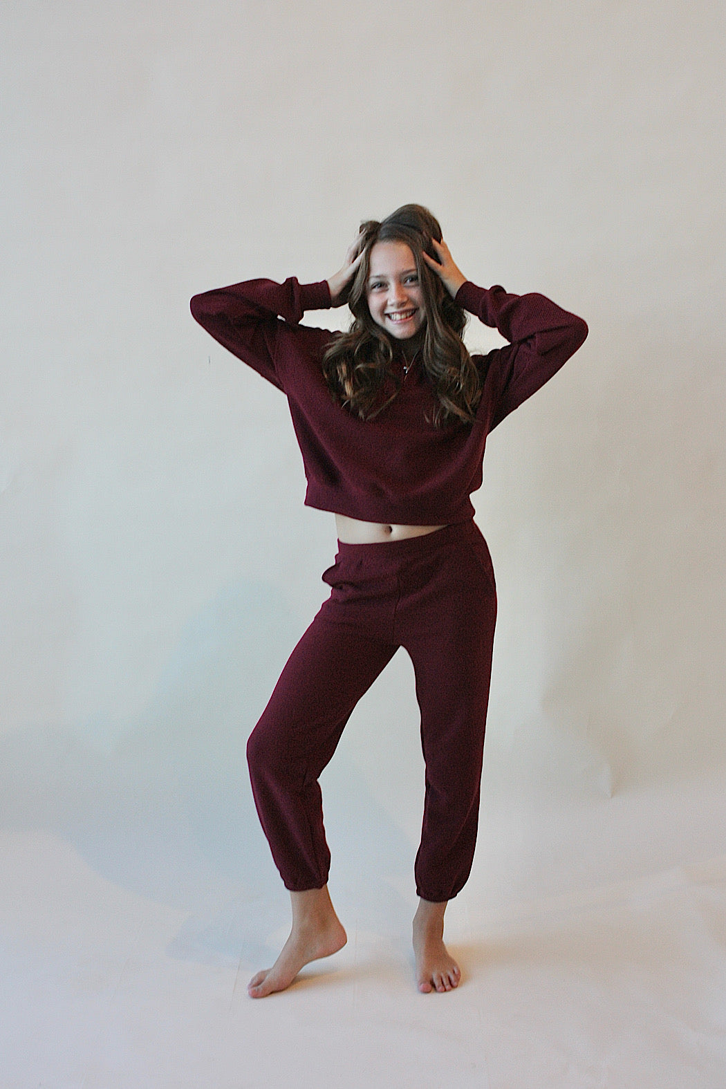 Crafted in the USA, these ultra-soft joggers offer effortless comfort and are ideal for travel. Featuring a cropped design and produced using recycled materials, they are tailored for girls aged 7/8 to 14. Shop the MATCHING QUARTER-ZIP and CREWNECK.