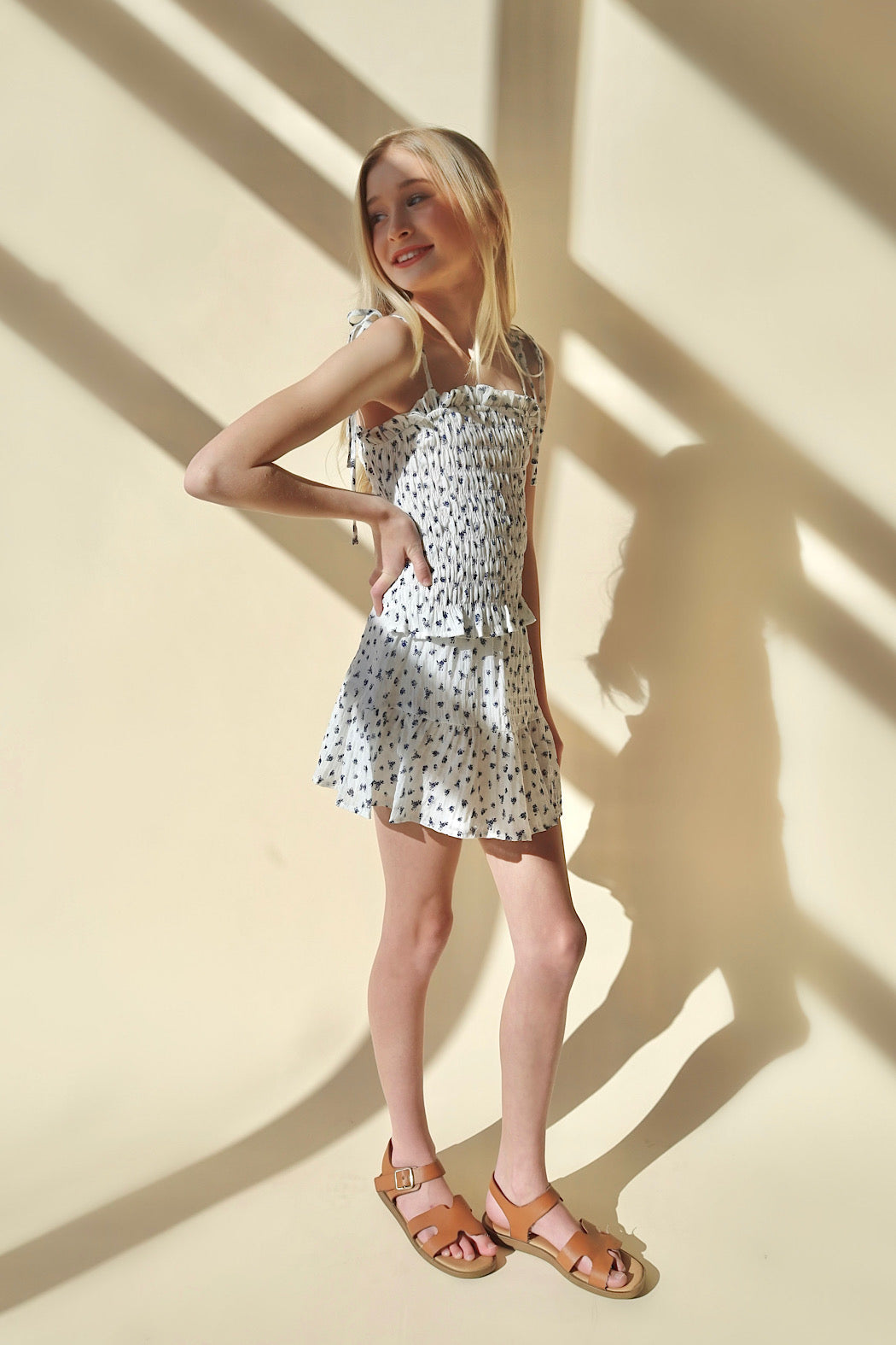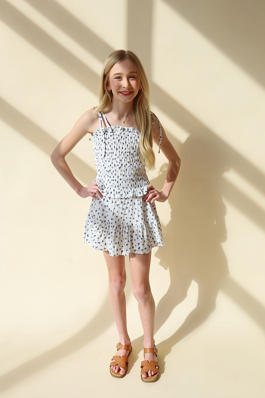 Blooming adorable! This dainty floral tank features a charming, smocked design that's perfect for twirling through spring. Mix and match with our MATCHING SKIRT for an effortlessly cute look that'll have her feeling like the star of the show.