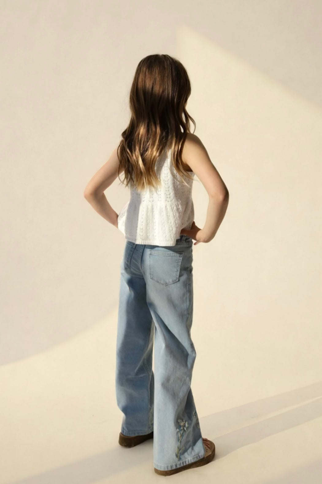 Twirl-ready knit tank with a fun peplum ruffle and adorable bow details on the straps. Perfect for summer adventures, this playful piece keeps young girls ages 8-14 cool and cute all season long.
