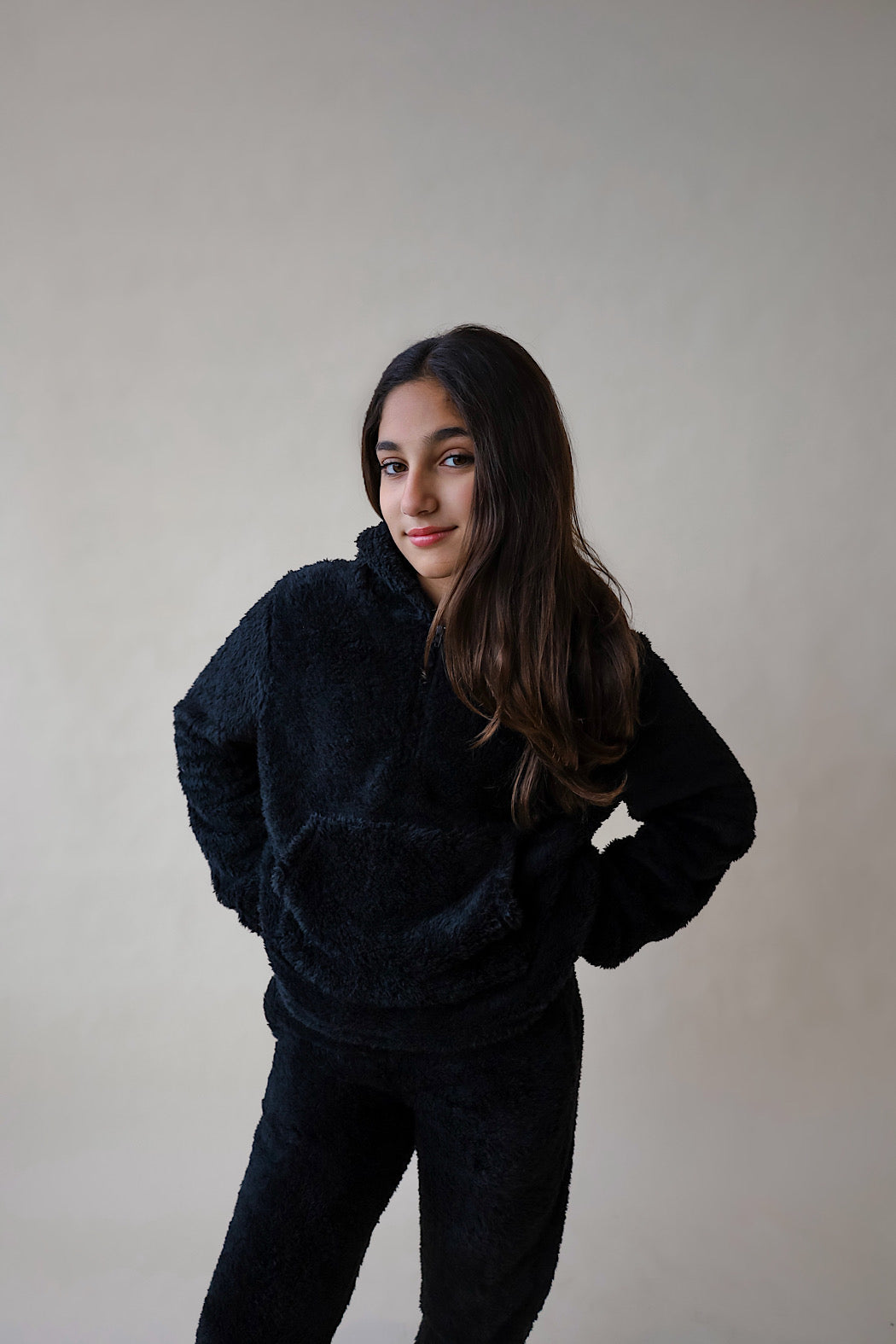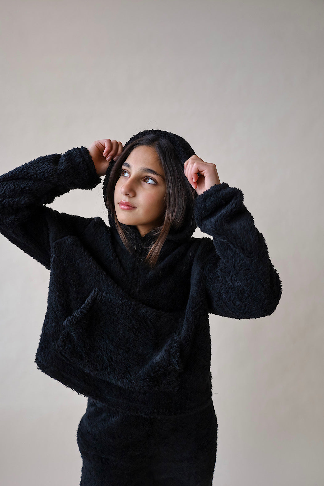 This ultra soft and luxe fuzzy hoodie is the absolute perfect gift for the youth that adores all thinks cute and cozy! Get the matching JOGGERs for a complete set she will want to live in all cold season long!