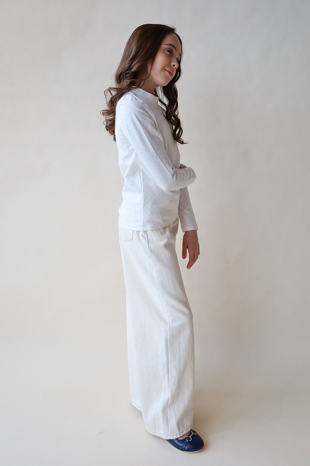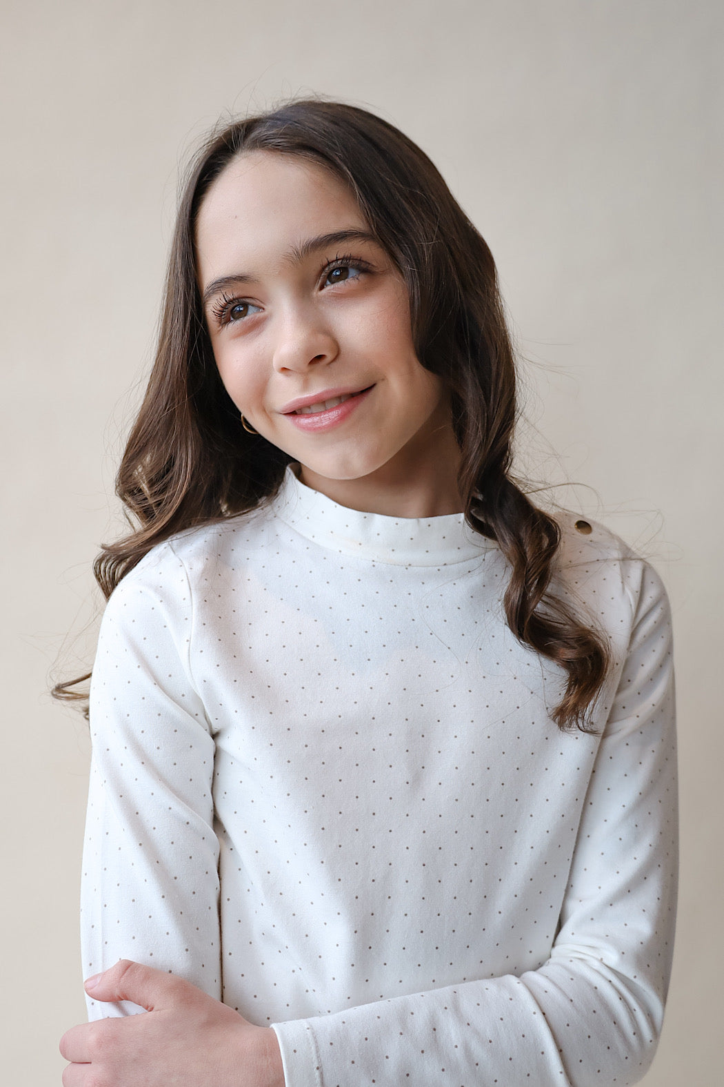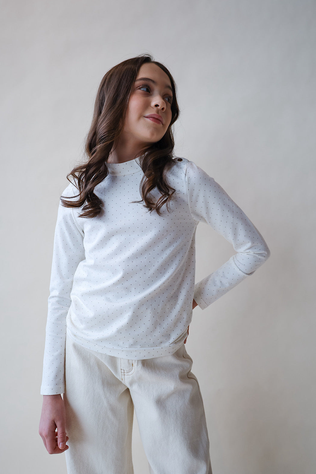 Hope & Henry wear-with-anything knit top is the fall essential that pairs with everything. Features a comfy mock neck collar and a light soft knit bodice in soft organic cotton that has just the right amount of stretch. Gold buttons at the shoulder adds the finishing touch. Layers beautifully with our collection of organic cotton jumpers and sweaters.