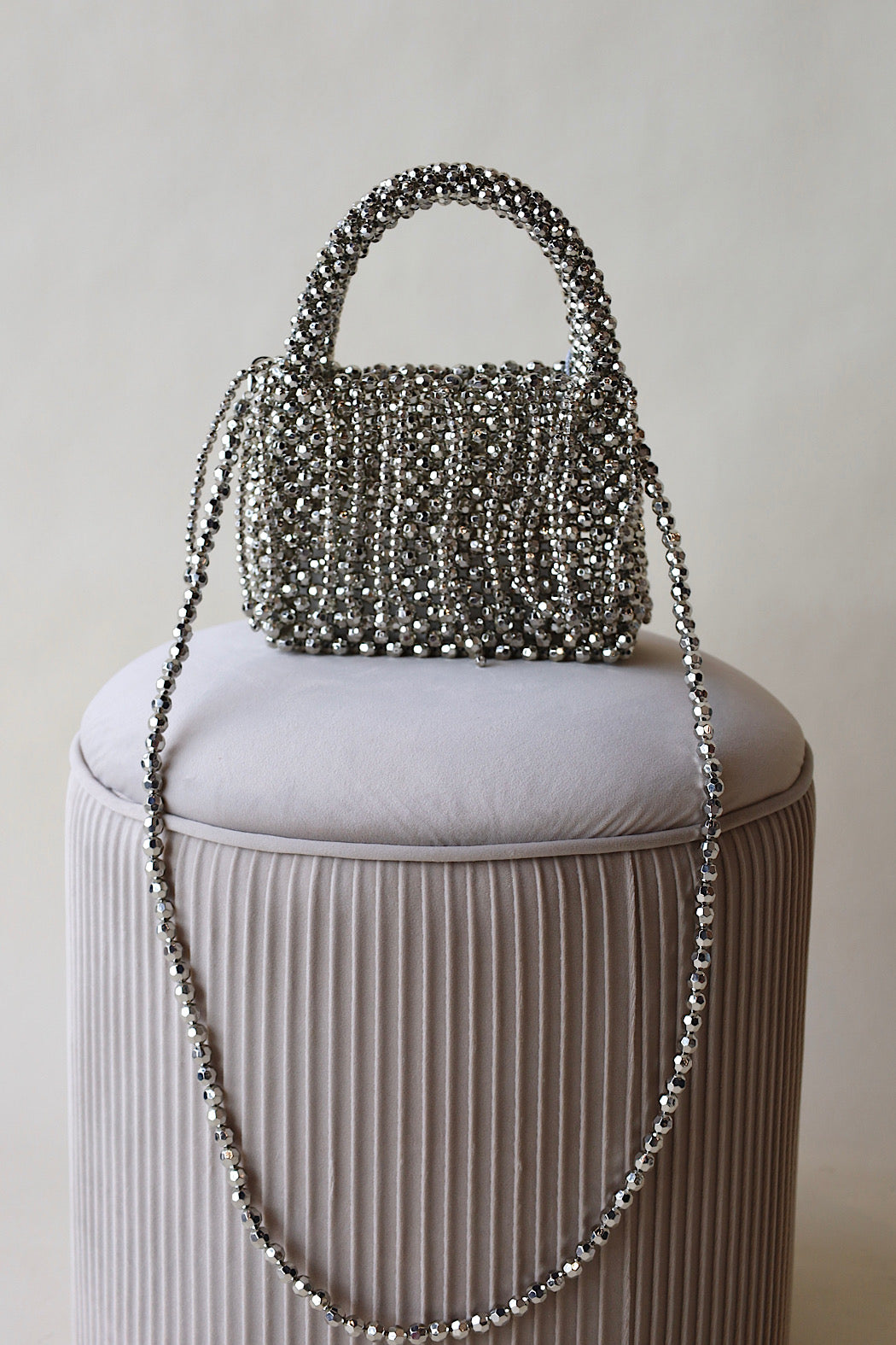 Elevate her style with this dazzling silver beaded mini shoulder bag from the Calin collection. Featuring eye-catching sparkle and intricate fringe beading details, it's the perfect accessory to transform any outfit into something special. The versatile top handle pairs seamlessly with an included detachable chain strap, giving her the flexibility to wear it her way—whether she's going for polished elegance or effortless chic.