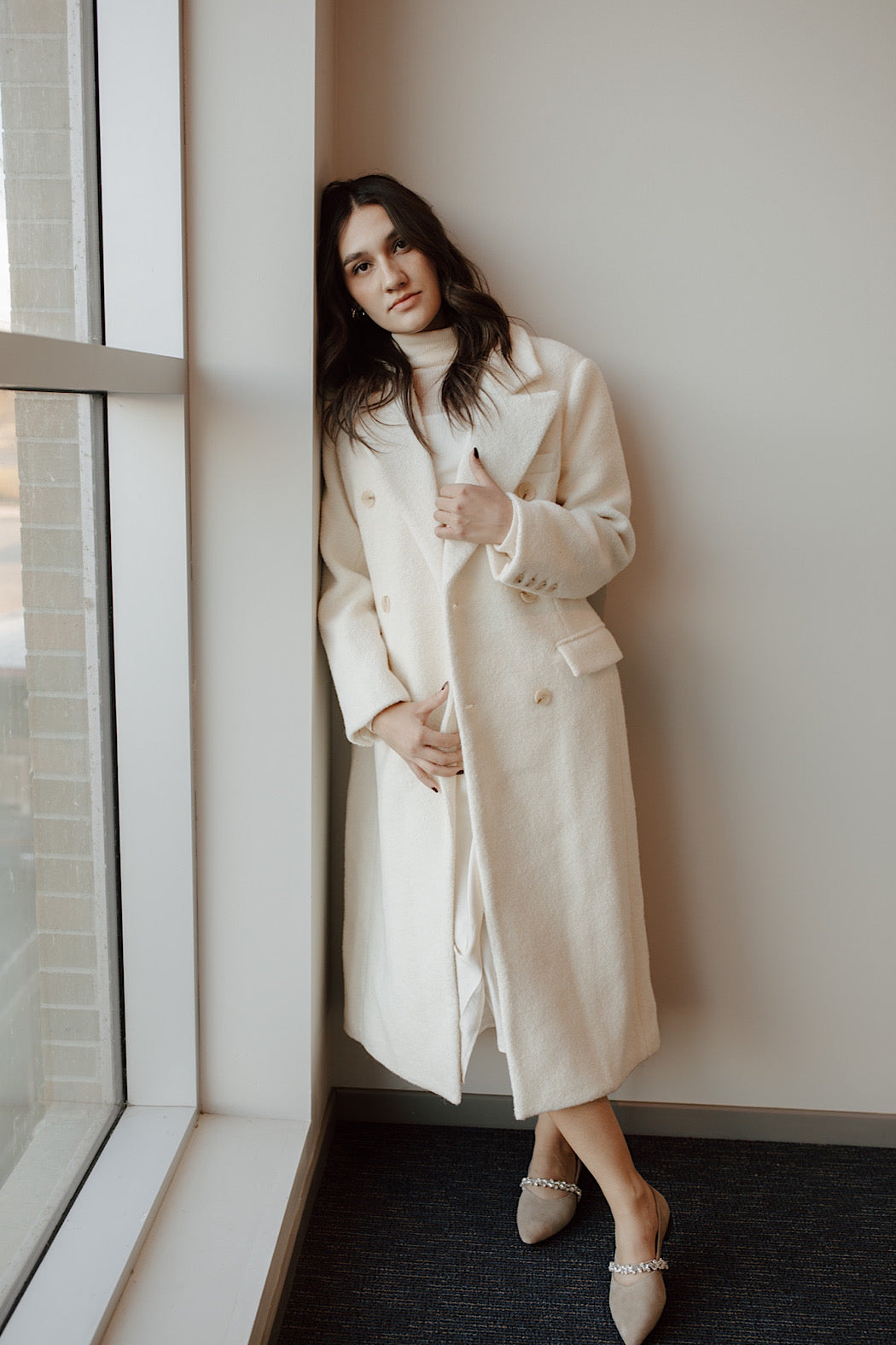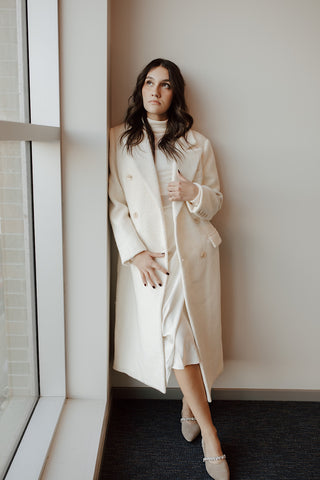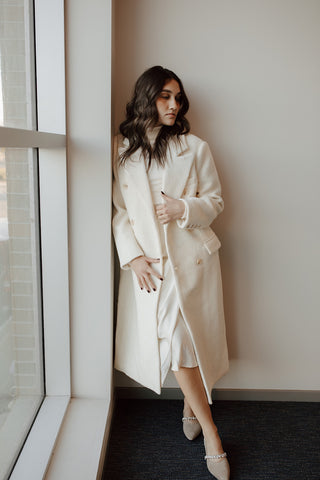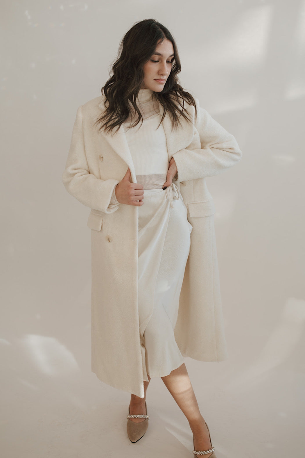 Luxurious, heavy duty and elevated wool coat that you NEED as a closet staple for all the future special occasions! Gorgeous is an understatement for this absolutely stunning, feminine style coat!