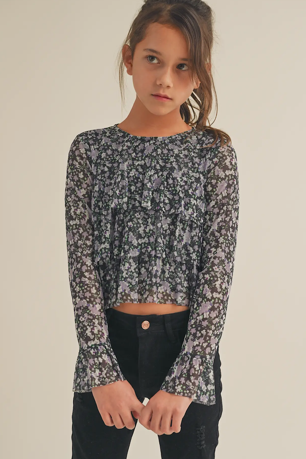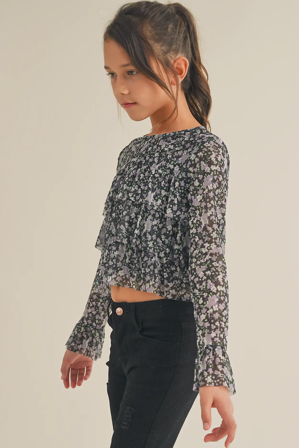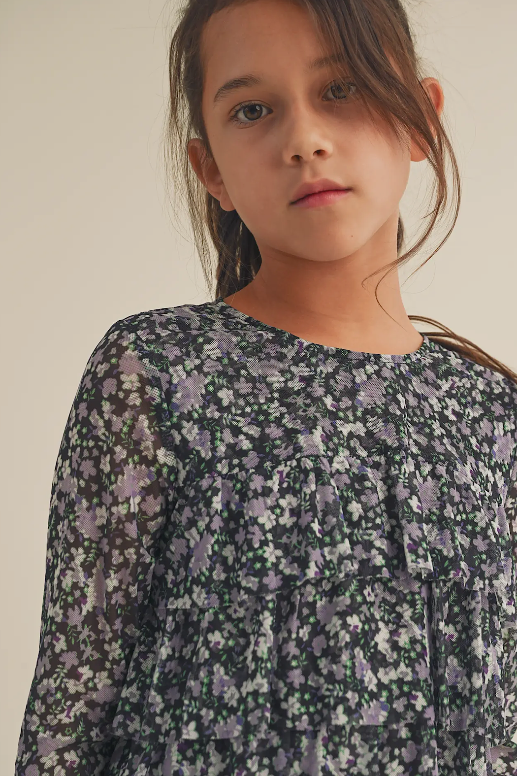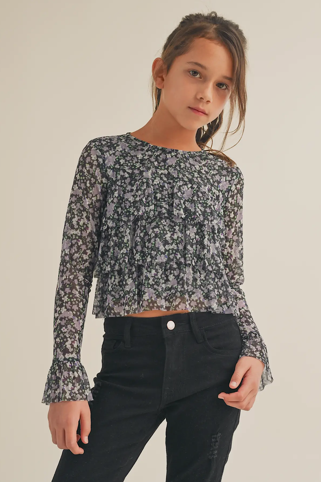 Embodying bohemian style with a delicate floral pattern, this blouse features breathable mesh fabric for lasting comfort. Its tiered design adds effortless elegance, making it a timeless addition to your wardrobe.
