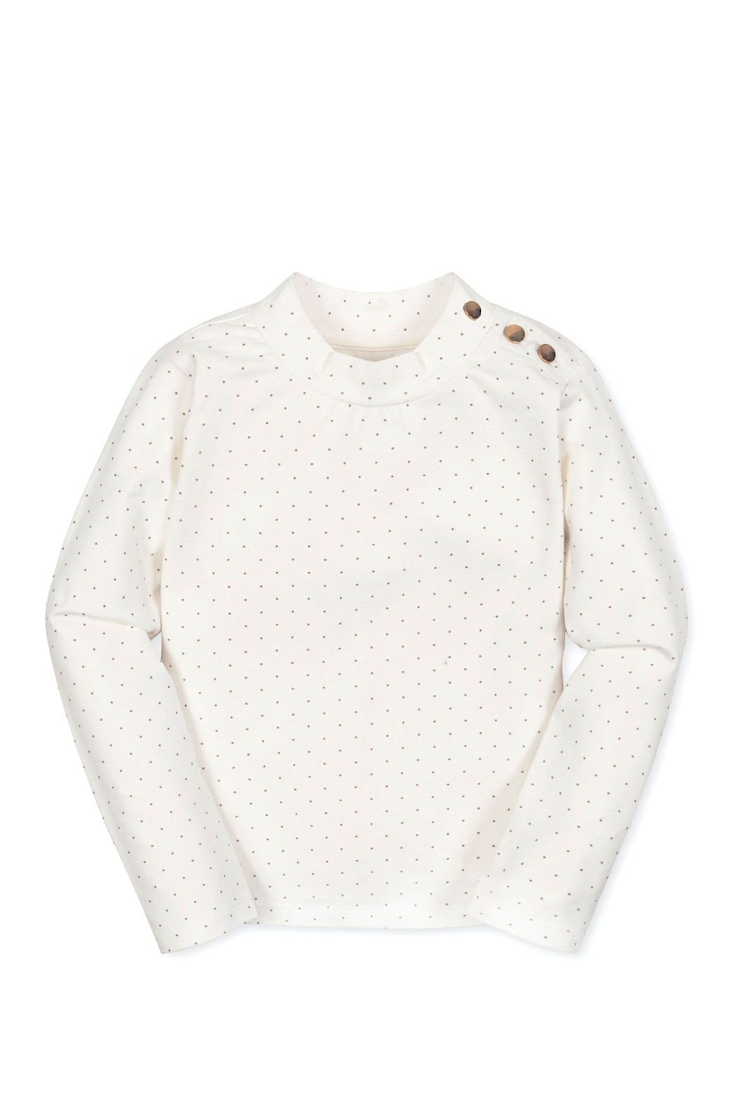 Hope & Henry wear-with-anything knit top is the fall essential that pairs with everything. Features a comfy mock neck collar and a light soft knit bodice in soft organic cotton that has just the right amount of stretch. Gold buttons at the shoulder adds the finishing touch. Layers beautifully with our collection of organic cotton jumpers and sweaters.